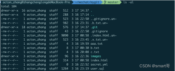 刚才那两个文件不见了!别担心,其实它们都还在,只是在不同的分支而已,只要切换回cat分支,文件就会出现了。