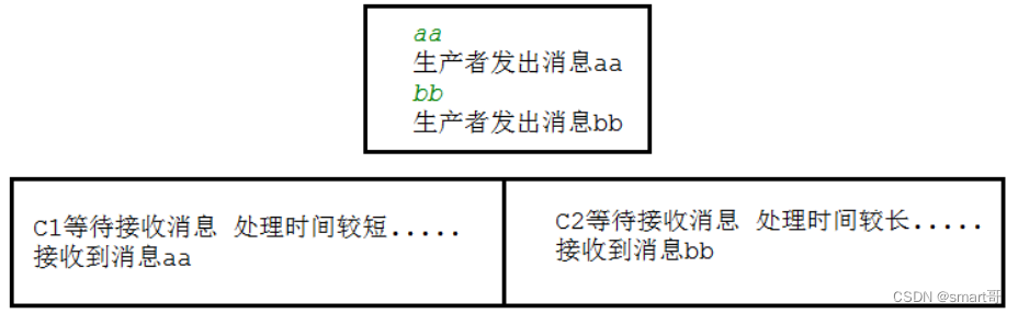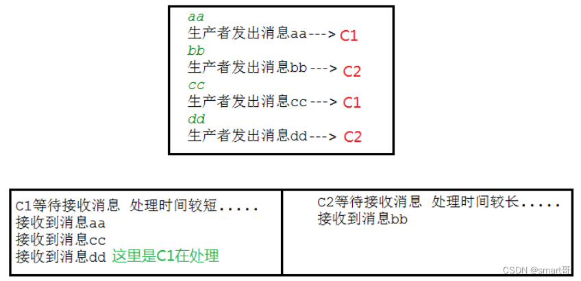 正常情况下消息发送方发送两个消息 C1 和 C2 分别接收到消息并进行处理