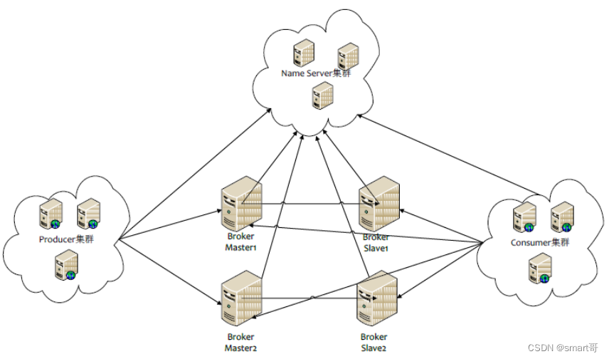 broker集群仅由多个master构成,不存在Slave。同一Topic的各个Queue会平均分布在各个master节点上。