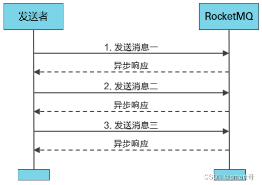 异步发送消息是指,Producer发出消息后无需等待MQ返回ACK,直接发送下⼀条消息。该方式的消息可靠性可以得到保障,消息发送效率也可以。
