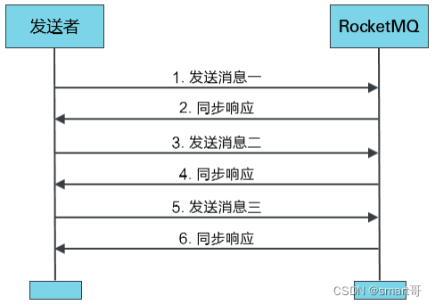 同步发送消息是指,Producer发出⼀条消息后,会在收到MQ返回的ACK之后才发下⼀条消息。该方式的消息可靠性最高,但消息发送效率太低。