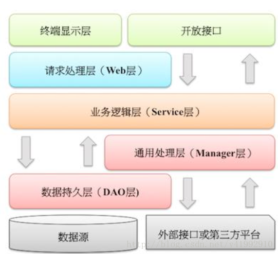 在《阿里巴巴 Java 开发规范》手册最后一节的应用分层中推荐了应用系统的分层结构。