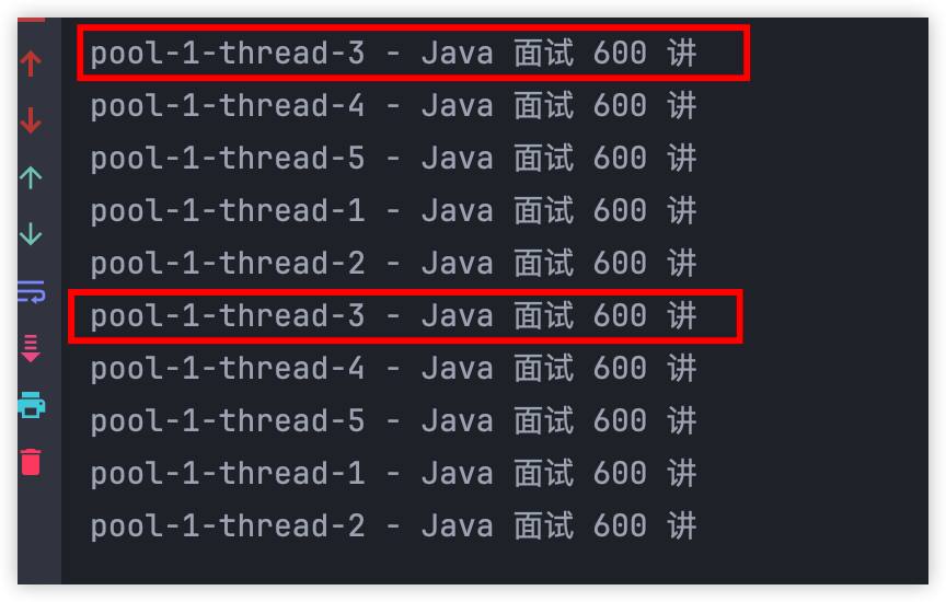 System.out.println(Thread.currentThread().getName() + " - Java 面试 600 讲");