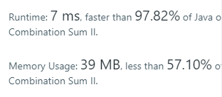 虽然看着还是有点冗余,但是可以在判断subSum+c[i]>=t的时候,可以减少一次函数调用的过程了(强行安慰自己,其实就是菜...)。最后附一个别人家的代码。链接:https://leetcode.com/problems/combination-sum-ii/discuss/16861/Java-solution-using-dfs-easy-understand