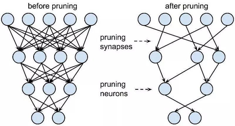 早期所应用的剪枝方法称为偏差权重衰减(Biased Weight Decay),其中最优脑损伤(Optimal Brain Damage)和最优脑手术(Optimal Brain Surgeon)方法,是基于损失函数的 Hessian 矩阵来减少连接的数量。