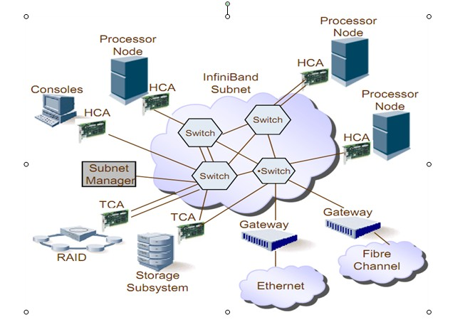 Infiniband的网络拓扑结构如图2,其组成单元主要分为四类: