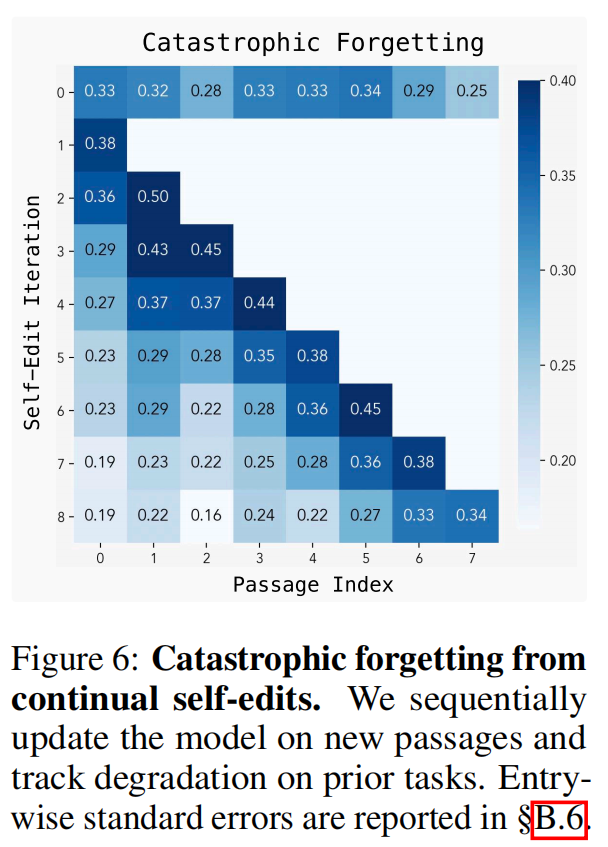里面:每次实验,采样N_DATAPOINTS篇文章;每篇文章,生成self-edit,做SFT训练更新,统计训练过的文章所对应的QA在当前模型上的正确率。这篇文章SFT训练更新后的lora模型,被merge进当前model,生成新的model ckpt,作为下一篇文章的加载模型。