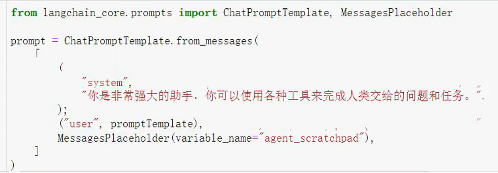 system指令、以上promptTemplate、tool调用历史agent_scratchpad: