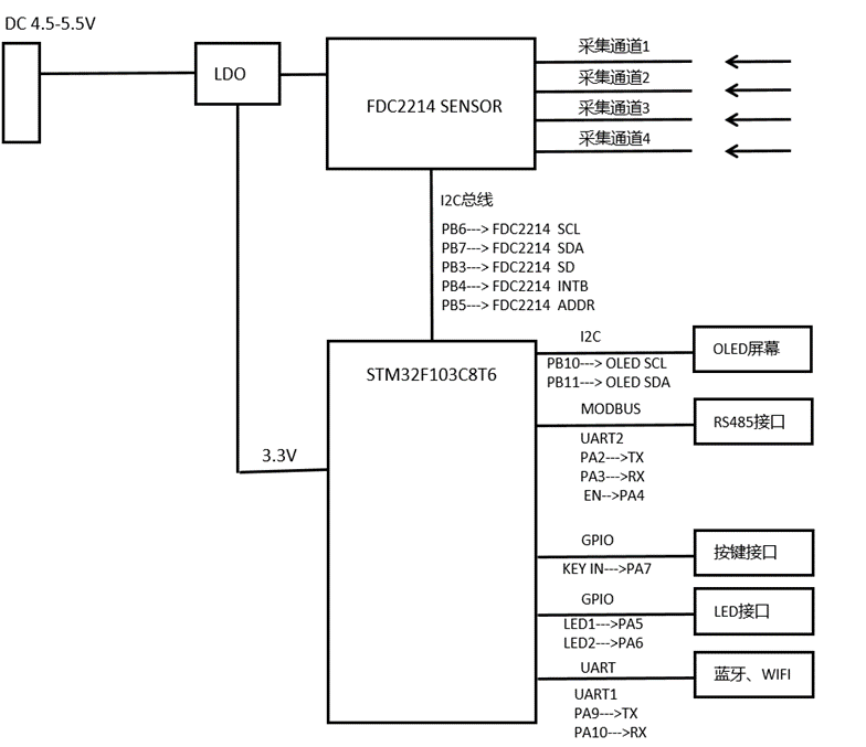 | 2 | STM32F103C8T6 | 测量数据及传输 |