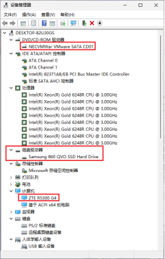 若使用虚拟磁盘类型为SATA,虚机设备管理器中显示为:VMware Virtual SATA Hard Drive,若磁盘类型为NVMe磁盘,则显示为:VMware Virtual NVMe Disk。调整下述SATA控制器的选项,没有任何效果,应修改vmware-vmx二进制文件中的常量字符串,进行文字替换,请参考5.3节。