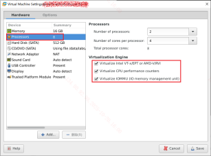 【注意】编辑虚拟机设置,在硬件-处理器界面中勾选启用虚拟化引擎,注意不同宿主机看到的结果可能不同。