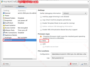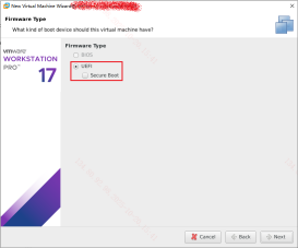 【注意】 在这一步骤中务必切换固件类型为BIOS,若选择BIOS模式为UEFI,BIOS版本将会带有VMware, Inc.字样,并且难以修改,如图图5.1-22。