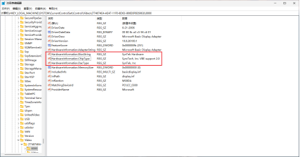 经过验证,修改vmx配置文件中svga.*没有任何效果,而应修改注册表中类似如图5.6-3所示的键值,该键值会出现多次。