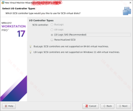 【注意】LSI Logic SAS为模拟真实的LSI SAS硬件控制器,具有较好的兼容性;而VMware Paravirtualized SCSI (PVSCSI)为VMware原生开发的虚拟化优化控制器,性能最佳,但必须安装VMware Tools(或Linux系统中的open-vm-tools)才能识别硬盘。因此选择LSI Logic SAS。