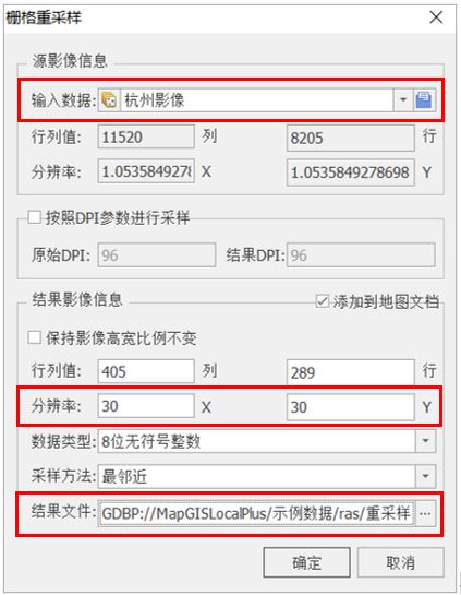 栅格影像的分辨率可以通过“重采样”功能进行修改,通常是从高分辨率改至低分辨率。从操作层面来说,可从低分辨率改至高分辨率,但结果栅格数据只是增加了行列值,并没有提高实际分辨率,结果栅格没有意义。