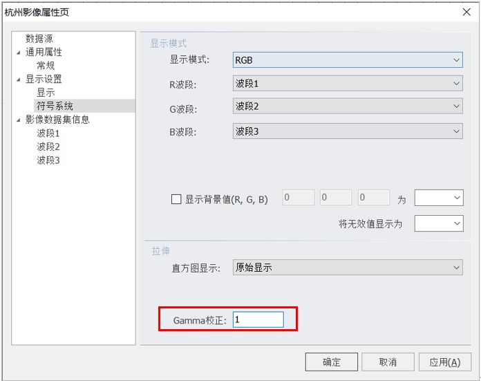 将栅格影像的Gamma值改成“1”即可,即影像不进行校正,为影像原始显示状态。