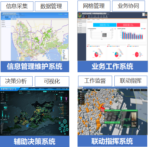 “在基础设施的支撑下,汇聚基层工作人员、社区志愿者、社区群众,以及对接获取到其他业务系统的相关数据,对数据资源进行分布式管理,形成社会治理大数据中心;在应用支撑层,依托地理信息和大数据等相关技术,实现社会治理业务管理、事件分拨处理、决策分析、可视化等四大类的应用;在用户层,为管理部门、网格队伍、社区志愿者、社区群众提供技术服务。”项目主要完成人、中地数码董事长吴亮介绍到项目总体设计思路,项目具体包含负责信息管理维护系统、业务工作系统、辅助决策系统、指挥系统等4大类型10个系统。