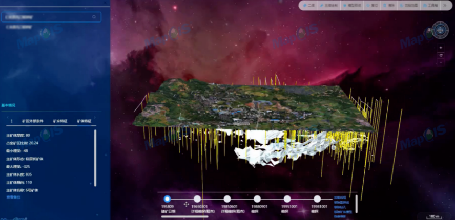 聚焦矿产资源全生命周期管理需求,从矿产资源规划保护、矿业权管理、勘查开采、闭坑修复全环节入手,构建“一图、四系统、一舱”应用体系,实现矿产资源一图总览、一码全息、一屏智管。