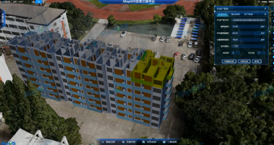 以地、楼、房、权、人“五位一体”精细化数字模型为基础,有效支撑复杂不动产对象的立体表达,准确清晰呈现各类产权体界址信息、实体信息、业务信息及周边关联信息,支撑不动产立体化管理。
