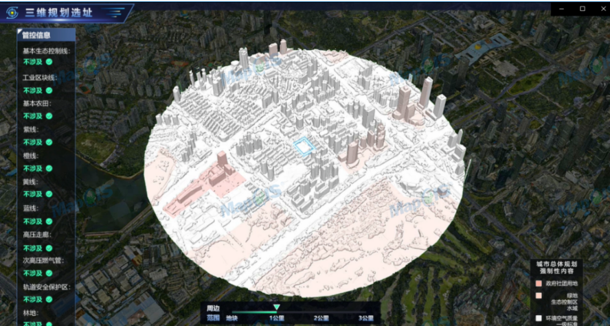 全面升级空间规划三维全景感知体验,提供全景分析、智能选址、动态追溯、空间模拟等数字化服务,助力规划科学编制、保障规划精准实施、支撑规划全程监管、推演城市未来发展,引导空间资源优化配置,促进城市内涵式增长发展。