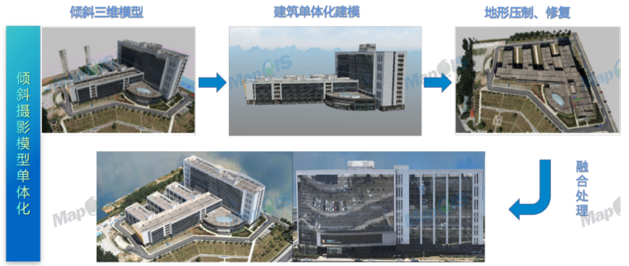 ◆ 城市级实景三维数据生产:通过无人机飞行平台获取倾斜摄影影像,利用倾斜摄影影像和三维数据处理软件,自动进行表面三角网格生成和纹理映射,生成实景真三维模型。充分运用影像自动提取、倾斜摄影单体化、精细化单体建模及Mesh网格模型修饰等技术,进行高效、参数化和人机交互式单体建模,实现高精度、高效率、智能化、一体化城市级实景三维数据生产。