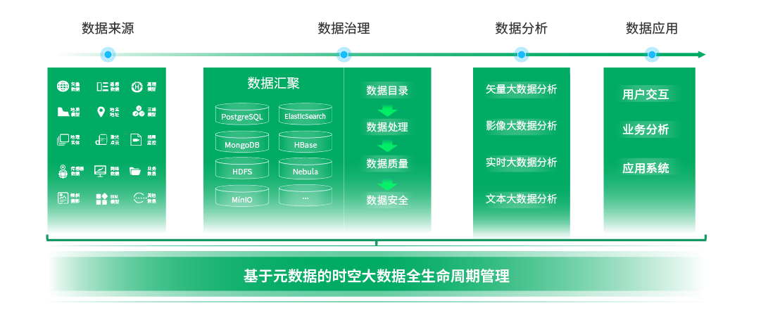 MapGIS 10.6针对时空大数据部分强化了时空大数据存储、时空大数据治理以及时空大数据分析能力,重点构建了时空大数据治理体系,打通时空大数据治理的各个环节,提升时空大数据的全生命周期管理能力,进一步挖掘时空大数据的应用价值。