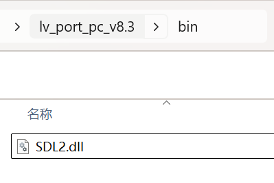 将此目录下的 SDL2.dll 拷贝到 lv_port_pc_v8.3\bin 目录下,如果没有这个bin目录,可以手工创建一个。