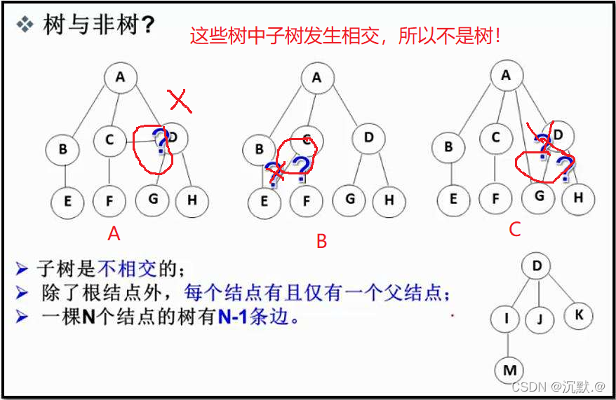 注意:树形结构中,子树之间不能发生相交,否则就不是树形结构