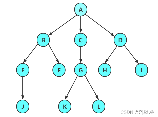 子孙:以某节点为根的子树中任一节点都称为该节点的子孙。如上图:所有节点都是A的子孙