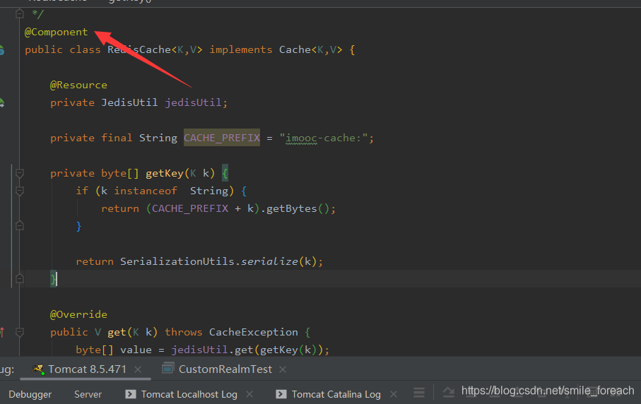 在尝试将Spring、Shiro与Redis结合以实现session共享时,遇到Bean创建异常,具体为无法解析名为'cacheManager'的bean,导致'securityManager'属性设置失败。错误信息中指出没有找到类型为'com.nice.cache.RedisCache'的bean,检查发现可能缺少了对应的注解如@Component。