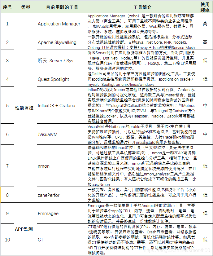 只有做到了上述的这些关键点才能是一个好的监控系统,而显然目前的测试工具所带的监控是不能满足的。另外测试工具本身在做监控也有其局限性,如 jmeter 在压测量较大的情况下回传测试结果 Master 节点会容易成为瓶颈。专业的事应该由专业的工具或系统来做(目前无论开源还是商用都会有大量成熟的监控产品),性能测试工具应该专注于压测本身,分出资源来做监控得不偿失(容易监控与测试互相干扰,尤其流量方面)。