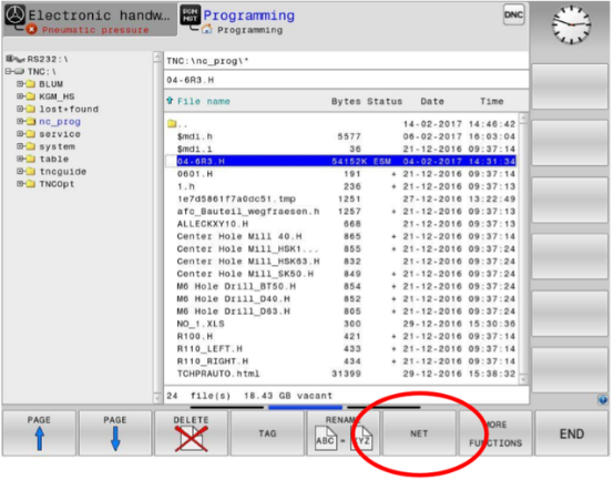 一、数控系统启动后,在编辑(EDIT)模式下,选择“PGM MGT” 键 按下网络(NET)软按键 ;