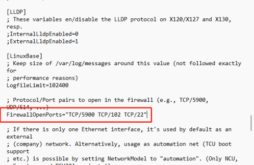 删除红框内“;”并增加端口为TCP/5900 TCP/102 TCP/22