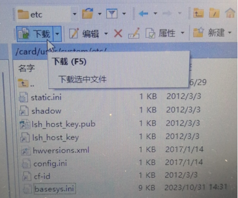 连接成功后可以在在/user/system/etc/文件夹下面编辑basesys.ini文件