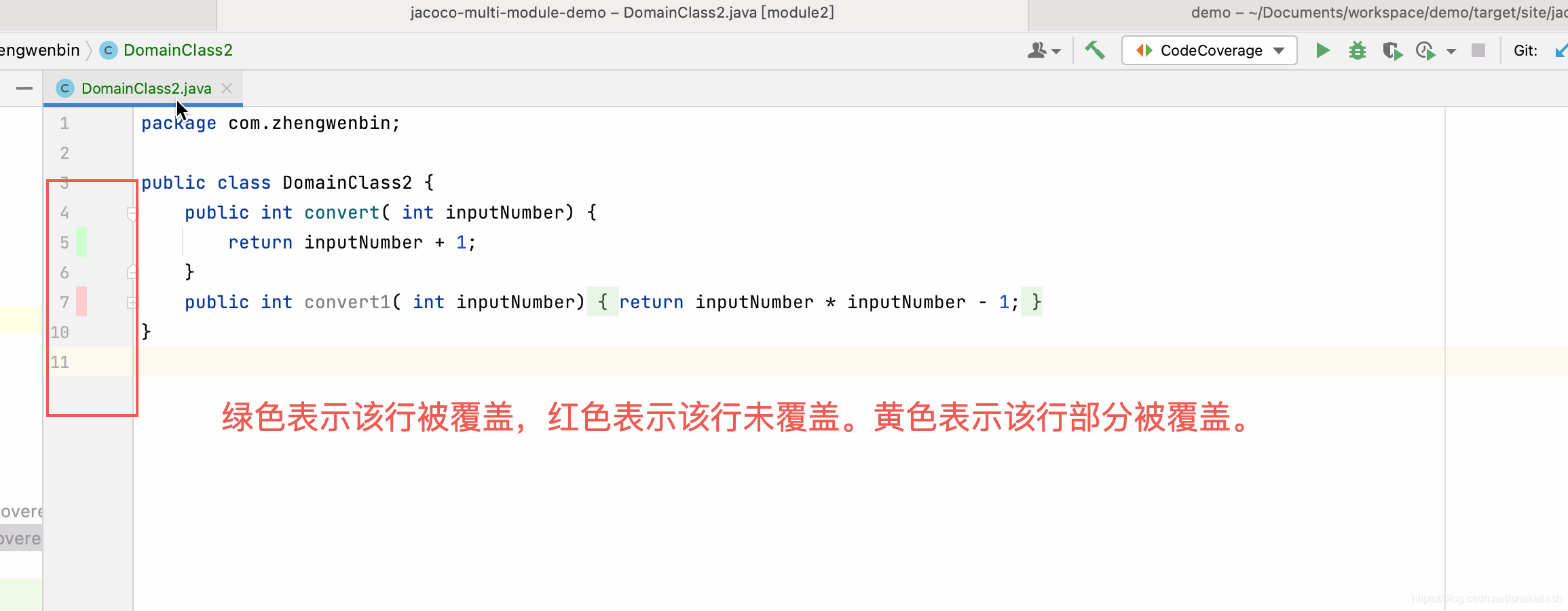 上述代码覆盖率报告适用于生成最终验收报告,实际开发过程中,可以使用ide工具来为每一次运行生成覆盖率报告,并将行覆盖情况显示在ide编辑器中。使用ide生成测试覆盖率报告,无需任何pom配置。