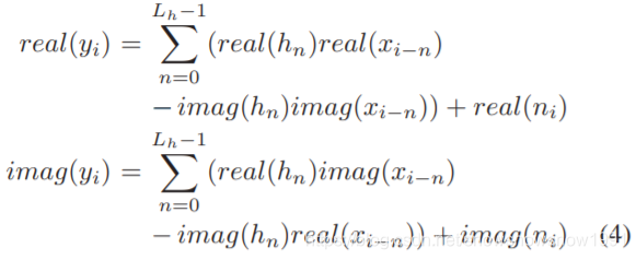 在第一卷积层中,我们将输入的长度从k×M压缩到M,步幅大小=k,并结合时间分布密集层和卷积层的使用,在发射机中进一步引入相关性和非线性。我们增加了第二卷积层的参数数量,以进一步提高网络的可表示性。这是受传统通信中先做编码引入冗余,再进行调制压缩数据的做法的启发。传输的符号X=[real(x);imag(x)]是大小为M×2的复数向量。在信道层,首先对输入符号进行归一化处理,以满足功率约束。对于AWGN信道,只在归一化符号中加入加性白高斯噪声。对于衰落信道,归一化后的符号首先与时域的脉冲响应进行卷积。复数卷积的实现方式如式(4)。在神经网络中,可以用一个1D卷积层来表示,用3D张量来卷积X。
