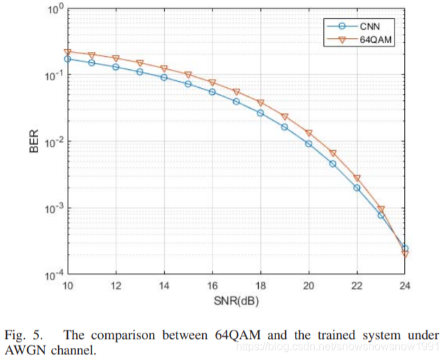 此外,我们想指出的是,我们的目标是证明CNN-AE能够在不需要事先建立数学模型和分析的情况下学习任何信道的映射和解映射方式,因此在没有专业知识的情况下,很有希望用于通信系统设计。我们也相信,其他一些基于自动编码器的结构,例如将resnet与自动编码器结合起来,也可能会带来对现有结构的改进。