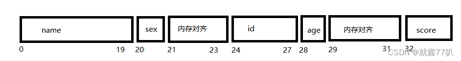 假设第一个成员的地址编号从0地址开始,之后存储每个成员的地址编号必须能被该成员类型字节数整除,如果不能整除,则填充空白字节数直到能整除为止。