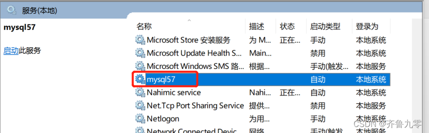 net start mysql57