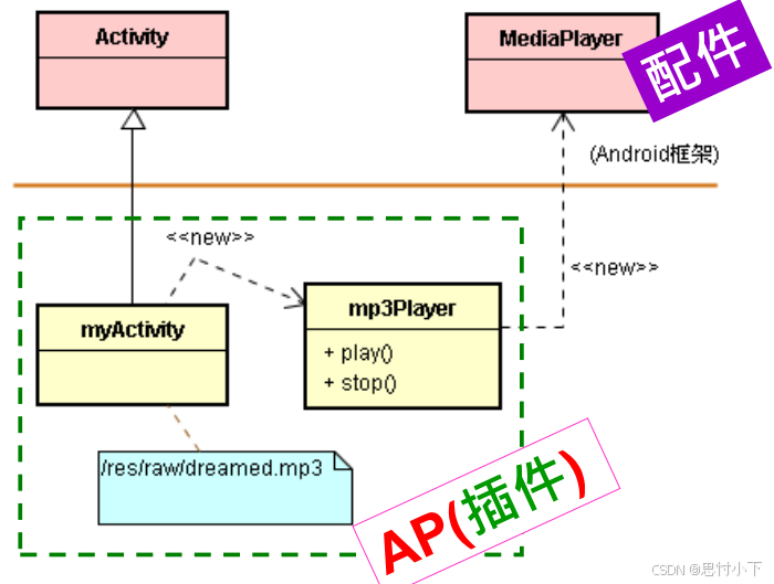- 框架(或架构)设计的关键任务就是接口(Interface)设计,这项接口是框架<E>与插件<T>之间的接口,这就是所谓的:框架API。