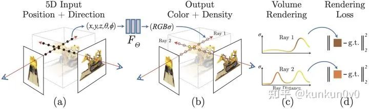 我们就可以得到输入相机位姿条件下的视角图片,然后和 ground truth 做损失即可完成可微优化。
