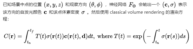 在上一节我们介绍了NeRF生成图片的规则。注意到体素渲染方程是连续形式,而在实际神经网络训练过程中无法完成的。因此我们需要将其改为离散形式进行近似计算(Quadrature积分法):