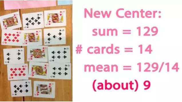 分好类后,计算每一类的平均值,作为新一轮的中心点: