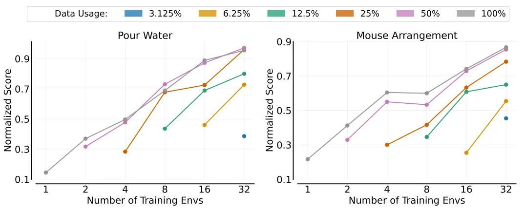 研究团队还成功攻克了业界长期以来的一个难题:在给定操作任务的前提下,如何科学合理地选择环境数量、物体数量以及每个物体的演示次数?