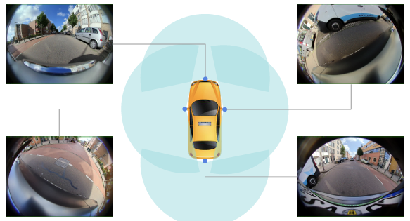 ▲图1| 由四个鱼眼相机组成的环视系统(SVS)©️【深蓝AI】编译