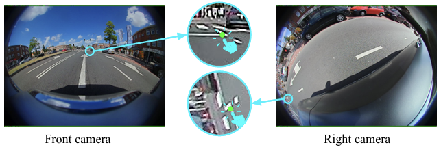 基于相机的SVS是ADAS和自动驾驶的关键组成部分。它们广泛用于鸟瞰图(BEV)图像生成、泊车辅助和3D感知。典型的SVS由四个环绕车辆安装的宽视角鱼眼相机组成,它们提供了360°的覆盖范围,如图2所示。