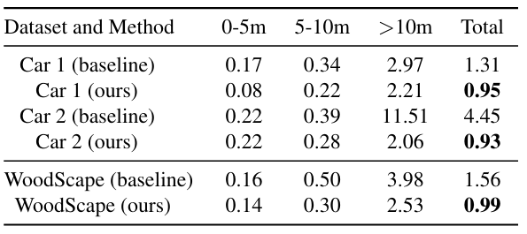 ▲表1| 在不同距离处单帧标定结果的MDE(米制)©️【深蓝AI】编译