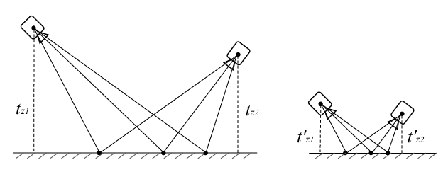 为了解决这个问题,在优化过程中需要固定三个平移参数中的一个。在实践中,每个相机的高度被选为固定参数,因为它们易于测量。