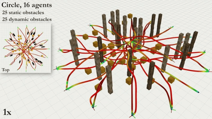 智能体之间需解决相互之间的冲突(如狭窄通道会车)、任务分配(如多机器人覆盖式巡逻)等问题,其评估指标包括规划时间、路径长度、碰撞率等。该基准支持集中式与分布式算法的对比,推动了动态避障与资源调度技术的发展。