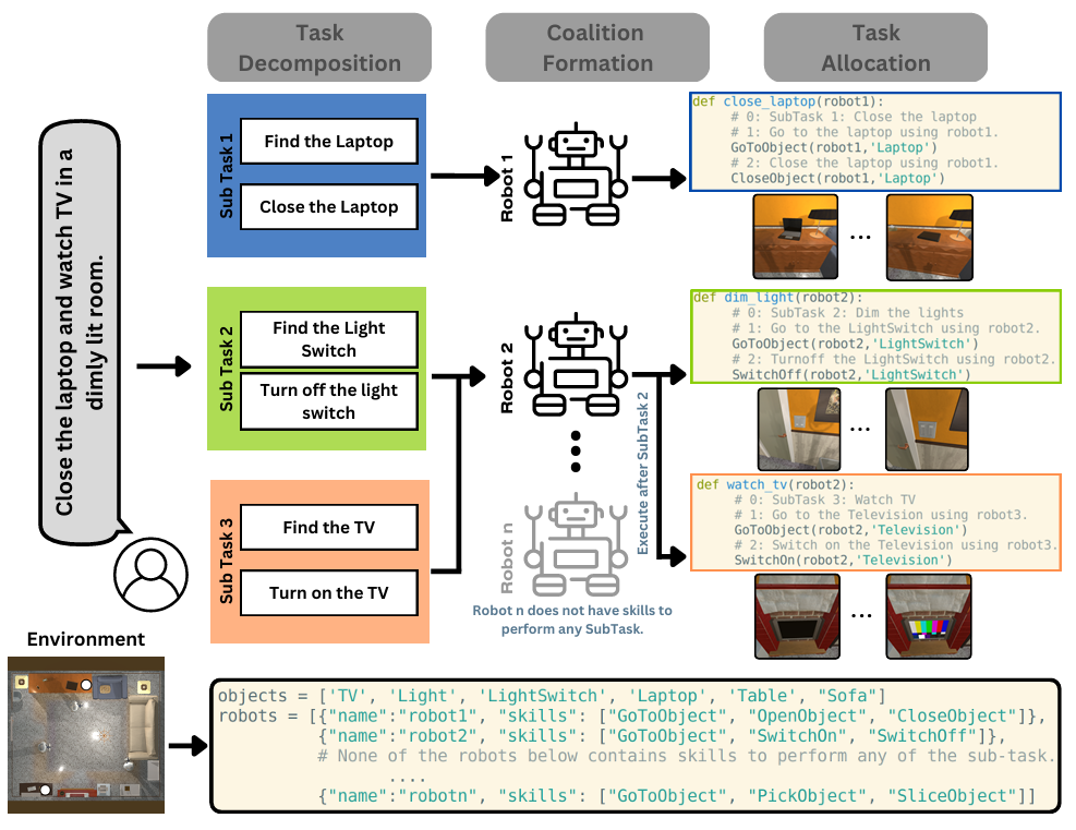 大型语言模型(LLMs)凭借强大的语义理解与推理能力,可将自然语言指令分解为可执行的子任务,并分配给不同智能体。